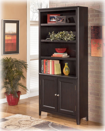 The sleek design of the contemporary styled "Carlyle" home office collection brings a rich sophistication into any home. A rich, dark finish accented with satin nickel color hardware adorns this home office furniture creating the perfect example of contemporary style. With ample storage space and a comfortable design, this office furniture is as practical as it is stylish. Create the perfect home office with the "Carlyle" home office collection. Information from, www.ashleyfurniture.com